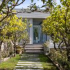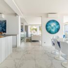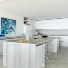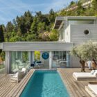 Mêlant pierre locale et bois, la maison se caractérise par un langage architectural épuré, inspiré de l’espagnol Ramon Esteve. Les grandes baies vitrées et les hublots rappelant le monde nautique, invitent le paysage à entrer dans chaque pièce.