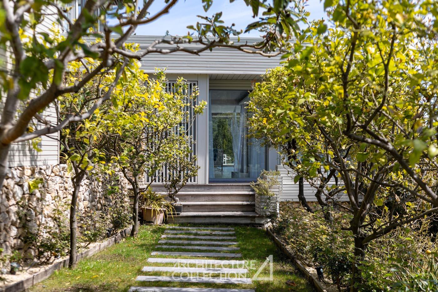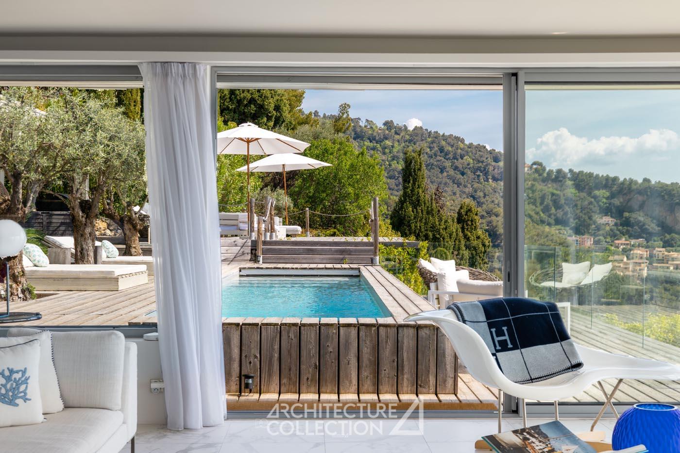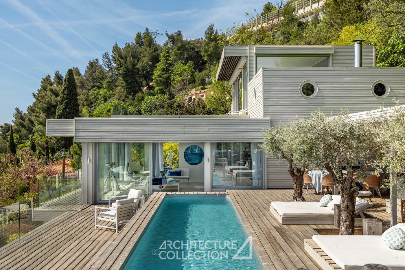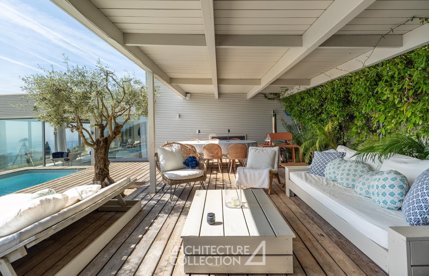 Des Glass houses californiennes, villas transparentes ouvertes sur la nature, aux célèbres villa E-1027 d’Eileen Gray et Cabanon de Le Corbusier situés à seulement 1 km, la conception de la villa s’inspire de ces grands noms de l’architecture moderne et des paysages méditerranéens afin d’offrir un lieu de vie en harmonie avec son environnement.