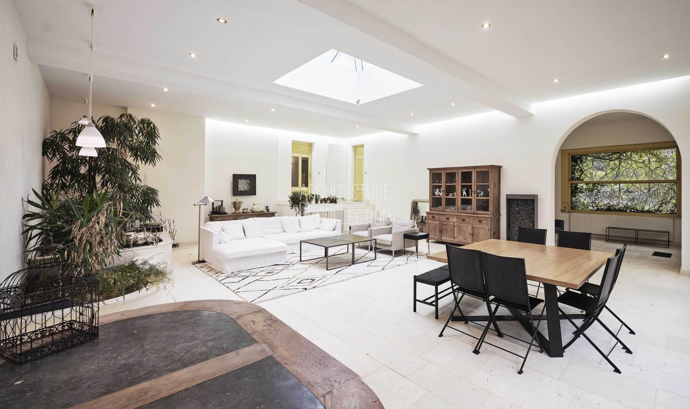 Au sein d’un terrain forestier de 5600 m², cette villa accessible par une grande allée bordée de platanes déploie une surface de 550 m² et se développe sur 3 niveaux.